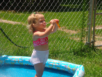 Playing outside in the pool and dirt
